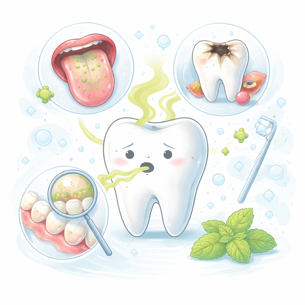 口臭は自分では気づきにくく、誰でも一度は不安になるものです。実は、口臭の多くはお口の中のトラブルが原因で起こります。